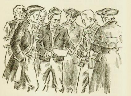 A post rider had just arrived, bringing the local mail and papers and news from Boston, about fifty miles away. The news he brought must have concerned the whole village, for men were coming from all directions to gather around him at the inn door.