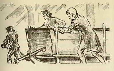 The men had to brace and strengthen the runners for the hard journey. Then they spent all one frosty day loading the sled with their sacks of provisions and the tools which would be needed for the task of clearing the forest and build a cabin in the new country.